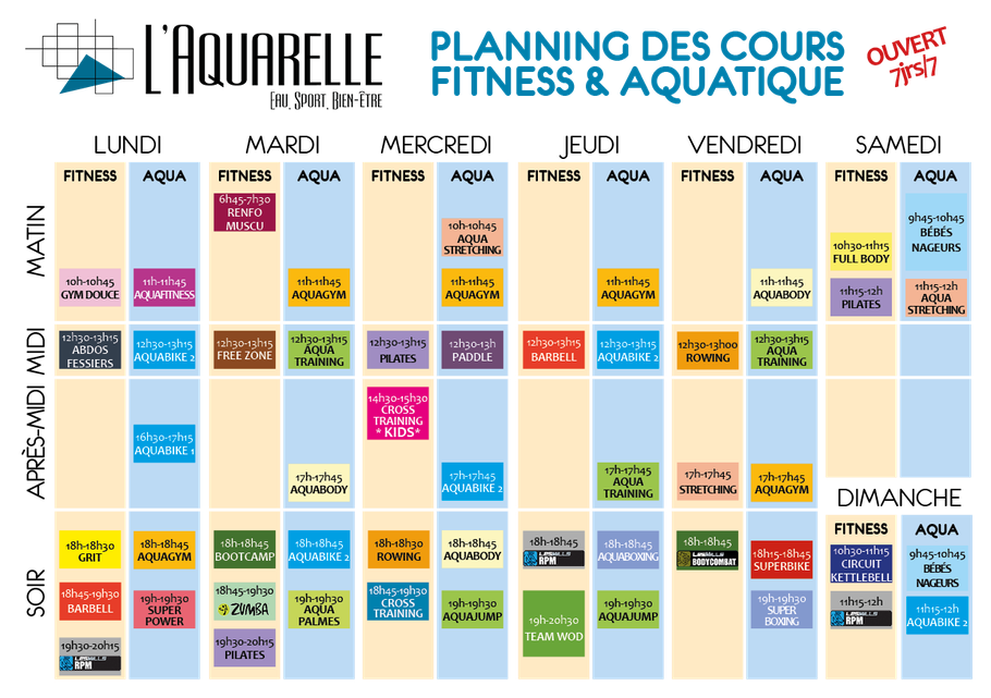 Il vous permet de découvrir un ensemble d'activités aquatiques en variant les plaisirs : Aquabike, aquajump, aquafitness...